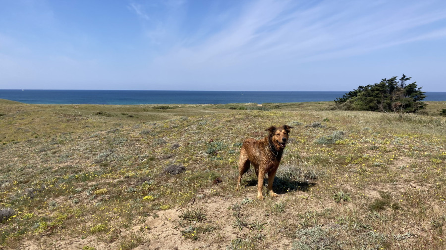 Pendant que le Greemlins se faisait photographier, je suis allée faire un tour forêt / plage avec Vasco. On a croisé quelques chiens, c’était cool.