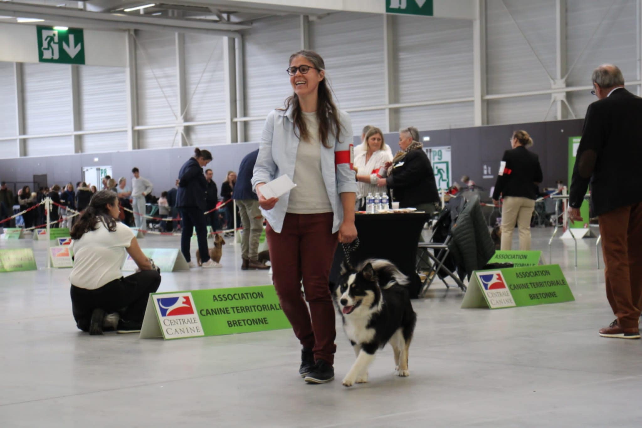 Il était beaucoup plus zen et s'est très bien présenté, même si je me suis UN PEU fâchée contre des proprios d'une chienne de la même race qui était en chaleur et qu'ils ne géraient pas du tout, créant de grosses tensions entre les mâles. Joie. Mais l'adoléchien a quand même réussi à prendre sur lui et à être a peu près focus. Le juge l'a beaucoup aimé et a même dit à l'éleveuse qui présentait une de ses chiennes de surveiller "ce petit mâle, car il sera intéressant pour vous". Aha.