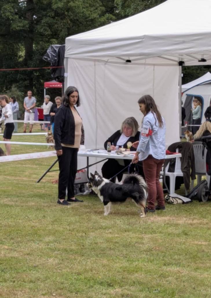 Chouette expérience, le lieu était vraiment cool et très "chien" malgré les gens (qui restent des humains). On était seuls dans la race, mais pour moi c'était vraiment un bon prétexte de travail : je connais la juge, qui est vraiment très chouette avec les chiens, prend le temps de bien les manipuler sans contraindre etc.