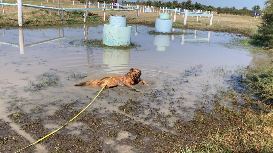 Donc je les appelle, je leur montre, le premier truc qu’ils font c’est de boire dedans. Ok on continue : je bouge l’eau avec la main, je lance des jouets dans l’eau : ils me regardent l’air vaguement interloqués, sans aucune intention de rentrer dans l’eau. Bon d’accord, on va employer les grands moyens: je rentre moi même dans l’eau et je les appelle en mode jeu : et là je croise le regard de mon chien qui disait clairement « mais qu’est-ce qu’elle fout mon humaine à s’agiter comme ça dans ma gamelle d’eau?!? »