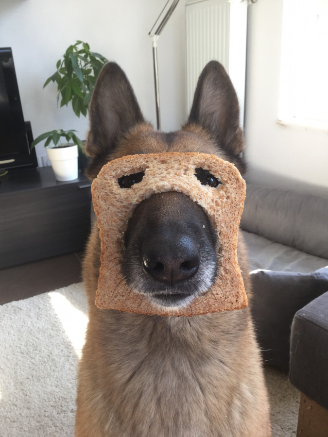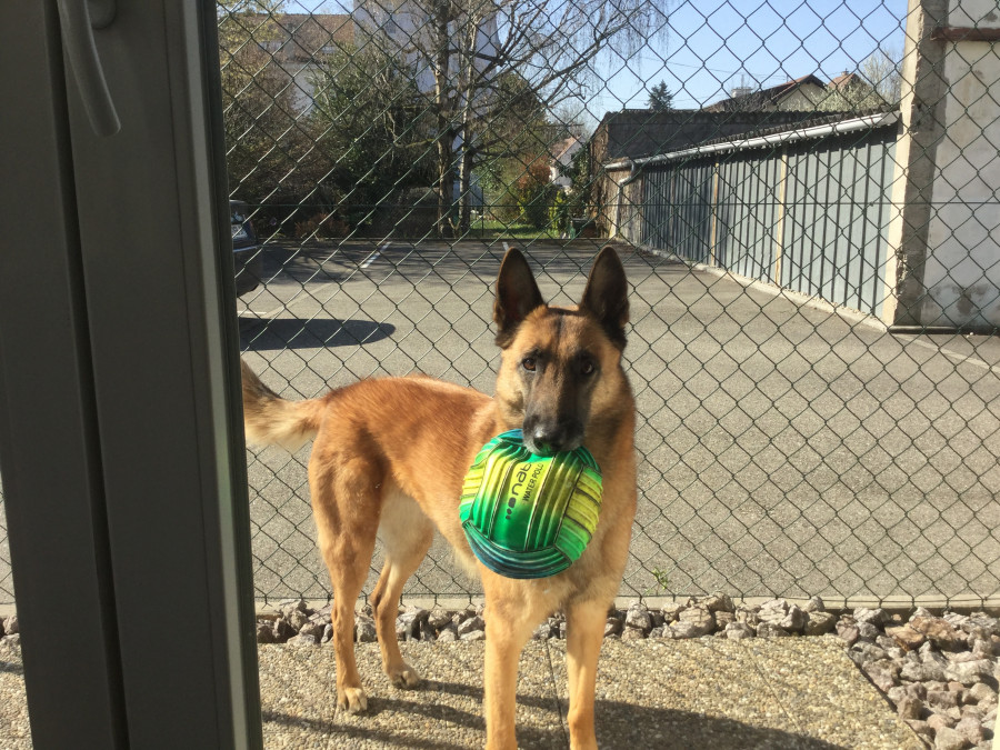 Pistache (F), croisée malinois, labrador et border, née en 2018.