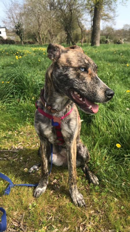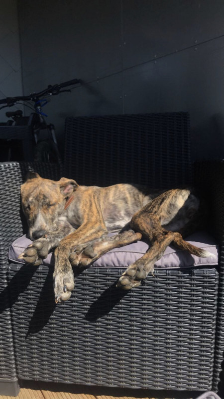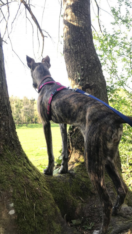 - Doudou (M), croisé lévrier x dogue, né en 2015. Skijo et canivtt en compétition. En pré retraite