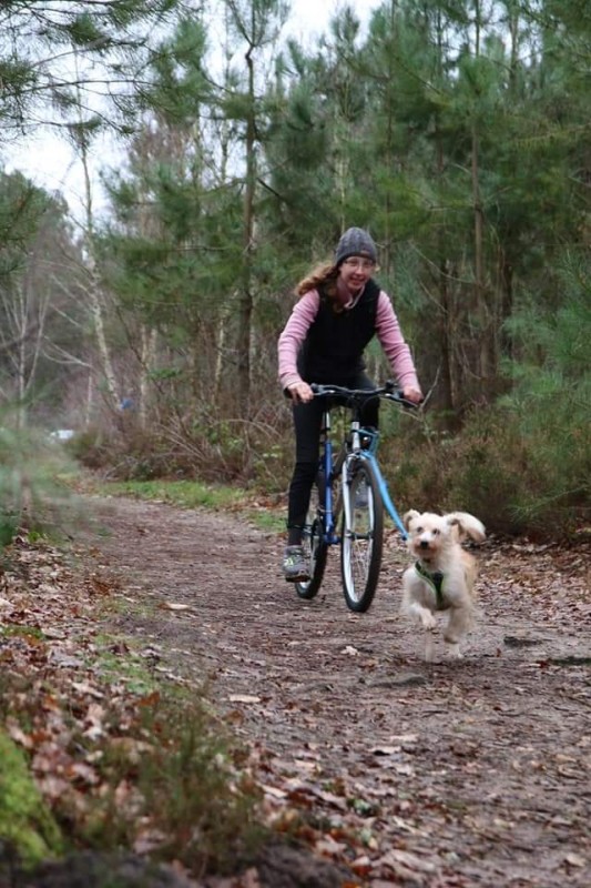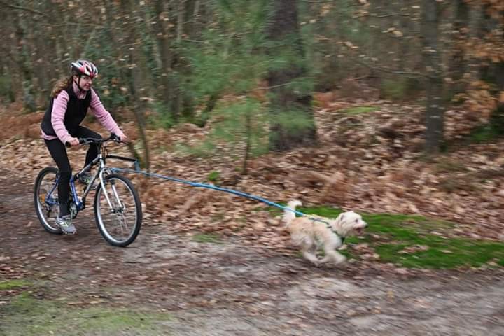 pratique le mantrailing, le nosework et le canicross en loisir.