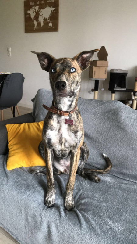 Pistache (F), croisée malinois, labrador et border, née en 2018.