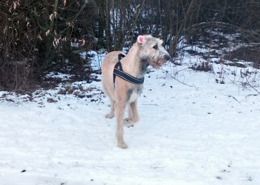 - La noireaude (F), setter irlandais x braque, née en 2013. Canicross en compétition, à la retraite.