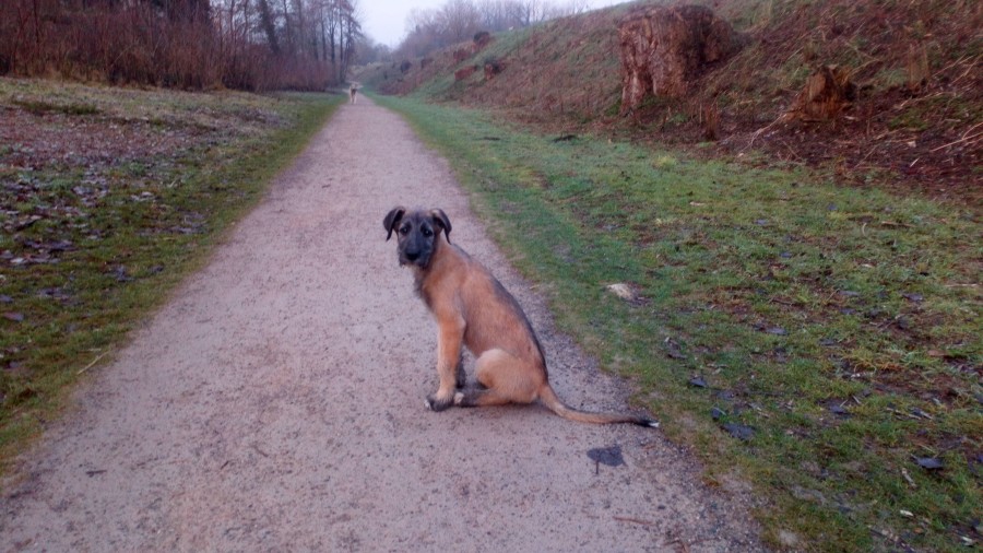 Prunelle (F), croisée berger de Roumanie, née en 2022. Veulent se mettre le canicross et l'agility.