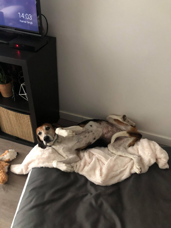 Dyna va beaucoup mieux suite à son infection urinaire. Elle profite de sa vie de chien d'appartement haha