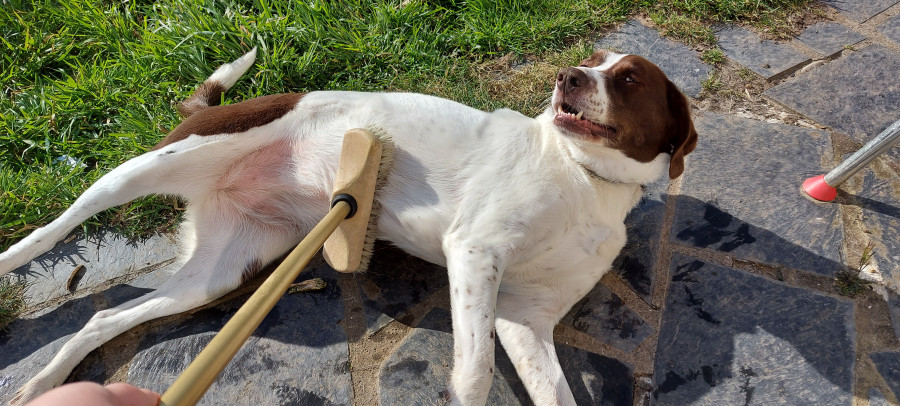 Quand ma chienne vit sa meilleure vie avec le balai brosse