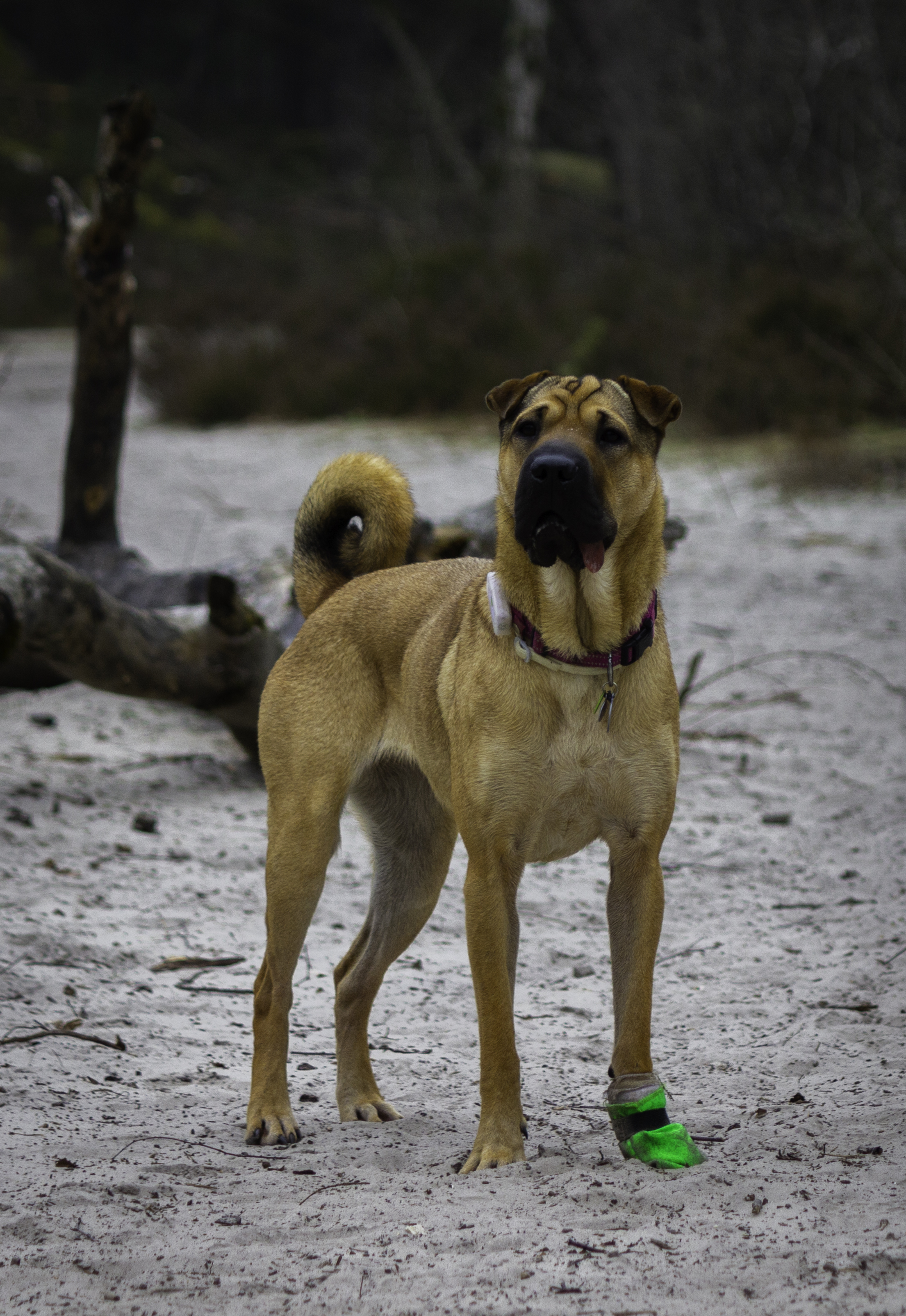 Dea n'est pas un chienne de race, c'est un Shargentin ^^ (Shar pei x dogue argentin), elle pèse 24kg pour 63 ou 64cm à peu près. C'est une asperge montée sur échasses :)