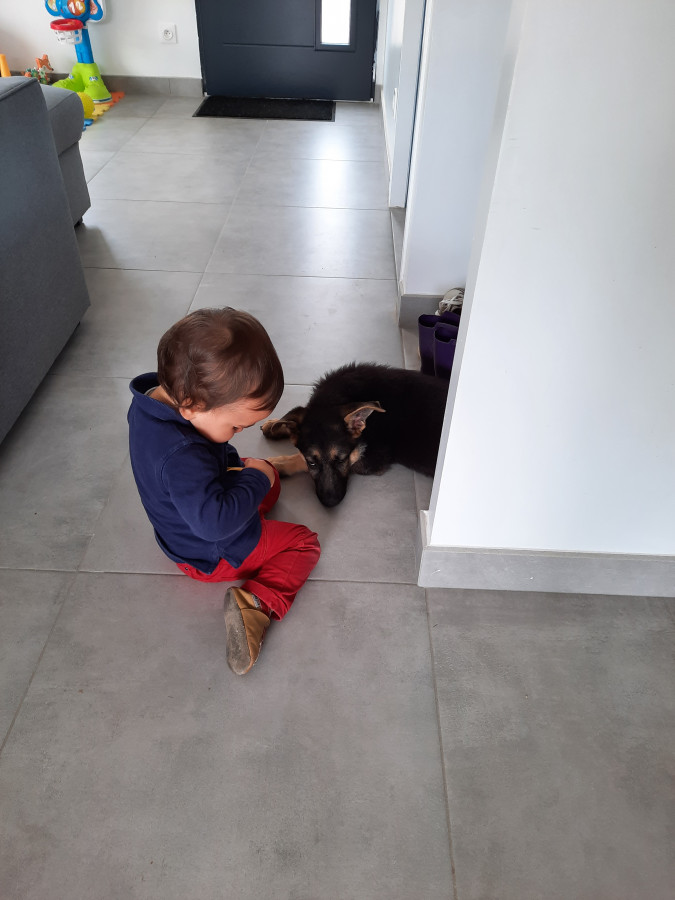 Et on travaille aussi sur le fait de ne pas aboyer à tout va dès que quelqu'un passe le long de la clôture