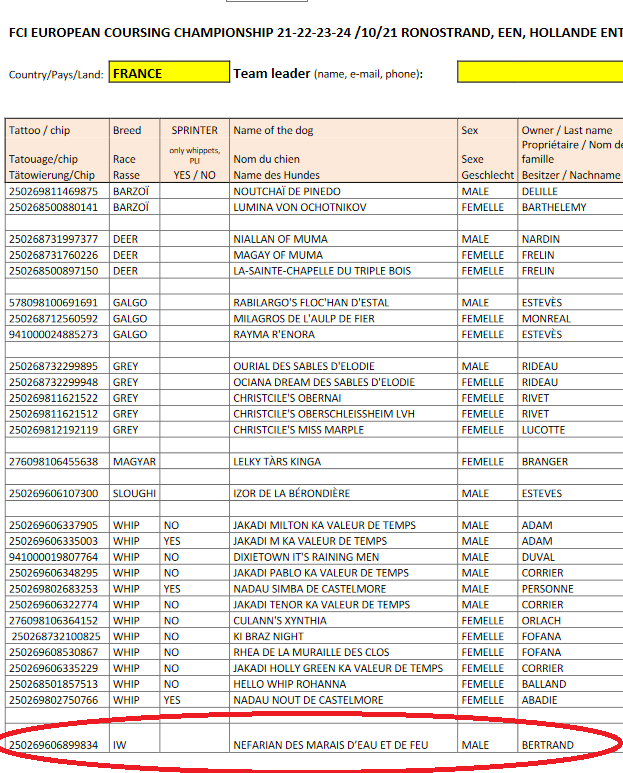 Il y a beaucoup de whippet en tout cas, pour représenter la France.