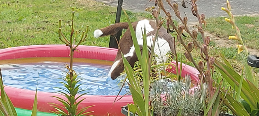 Hier elle mettait juste les 2 pattes et en mode furtif et aujourd'hui elle a mis les 4 pattes et elle est resté un petit moment dedans