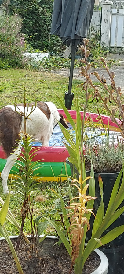 Là il s'est levé de lui même et a marché précautionnent pour aller se coucher dans le jardin... Au moins il a marcher, et sans couiner, ce qui me rassure un tout petit peu...