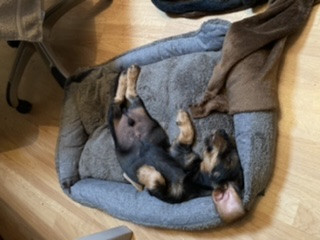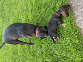 Hello, suite à l’arrivée samedi d’un nouveau membre de la famille, je vous présente skip, chiot teckel poil dur de 9 semaine et mon « vieux » pixel kopov/ariégeois de 2 ans.