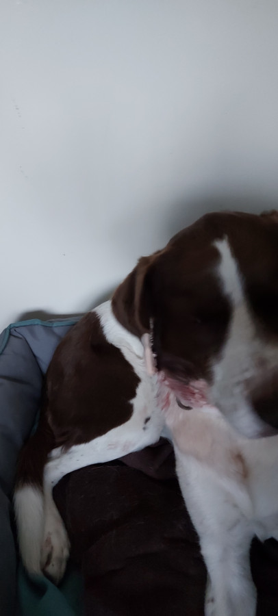 C'est pour ça que je te disais de lui bander les oreilles autour de la tête, il n'y a que comme ça que ça va cicatriser, sinon a chaque fois que l'oreille touche qqchose ça va se réouvrir et re-saigner