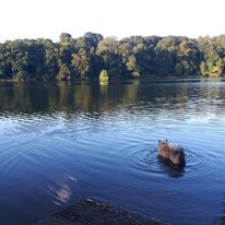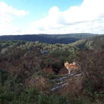 - La noireaude (F), setter irlandais x braque, née en 2013. Canicross en compétition, à la retraite.