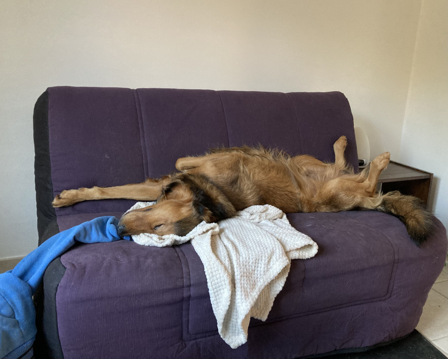 Ma chienne a été trouvé à l’âge de 3/4 mois avec sa sœur sur un parking dans un état pitoyable. Les deux chiennes étaient innaprochables.