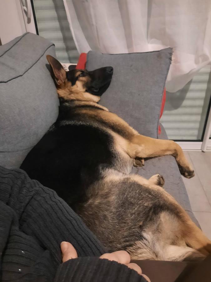 Là j'ai refait l'expérience, je vois bien qu'il s'agace plus je lui demande de se coucher sans récompense. Surtout que il sait qu'à côté, y'a mamie qui lui donnera s'il demande. Il a fini par partir (très bien), mais en gros j'ai l'impression d'agir en R- (genre dès qu'il va à ma grand-mère, je lui demande de s'allonger à côté de moi. S'il part dans son coin, aucun souci). Sauf que je dois faire hyper attention que ça ne braque pas mamie. Mais bon clairement, il répondait tout simplement avec de moins en moins d'envie. Ce n'est pas un chien qui a été éduqué donc lui, quand il reçoit une demande, soit il ignore, soit il fait "ce qu'il veut", puis parfois il écoute.