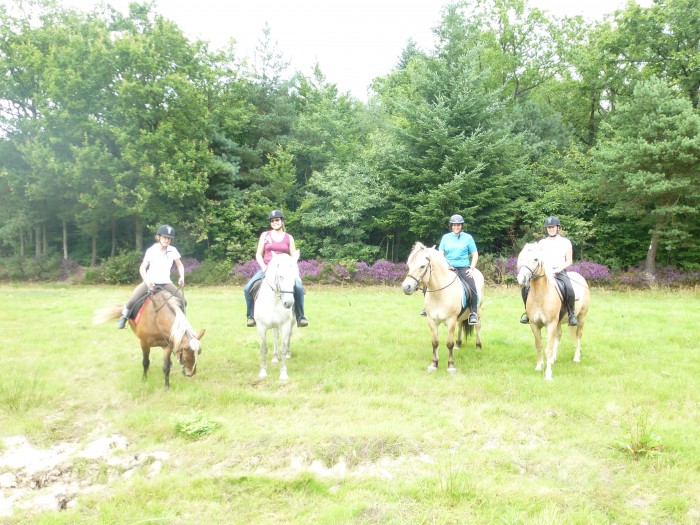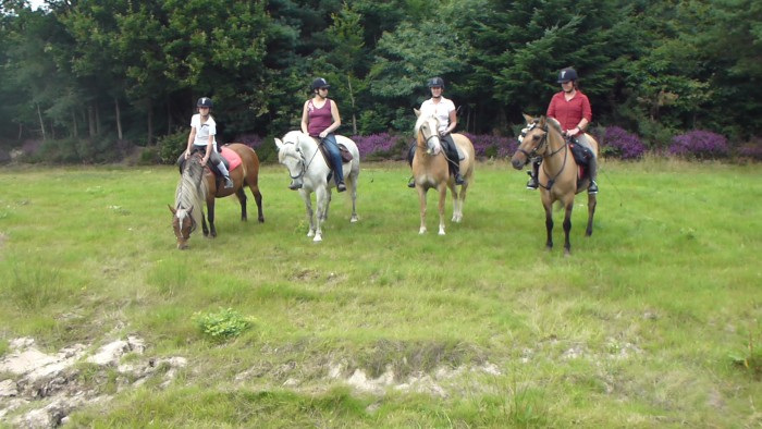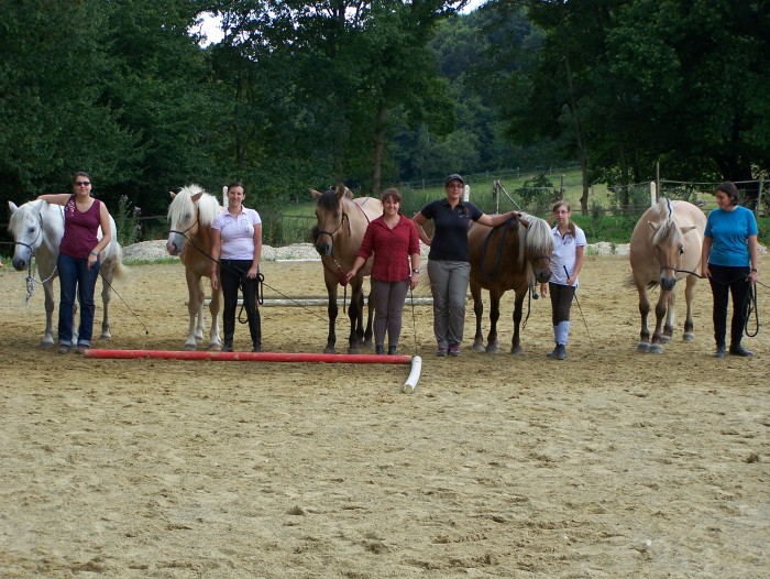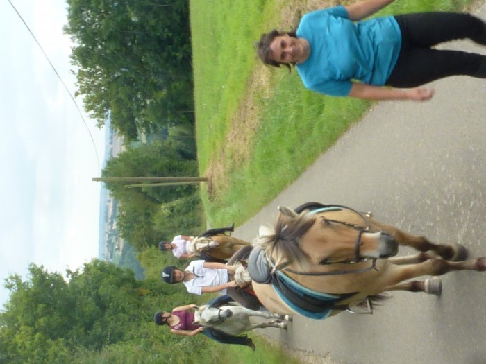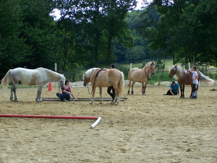 Les filles du stage du matin, partent en balade pour l'après-midi et nous on prépare nos gentils poneys/chevaux et en carrière.