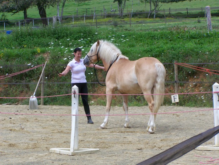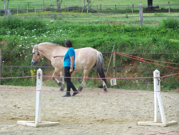 Et Audrey à montée un petit rond de longe dans un coin de la carrière pour faire du mener pour bien se placer, ensuite comme une longe, départ des deux cotés, un peu de trot, au pas, des arrets.