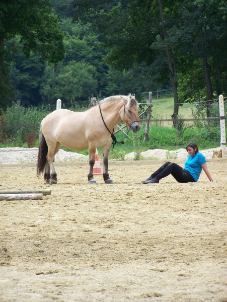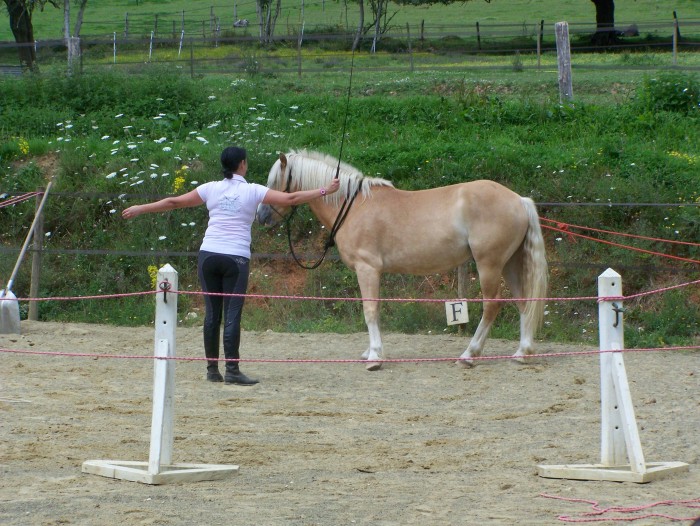 Souvent, le cheval comprends vite pour son confort de reculer dès que la longe ondule un peu, bon il y en a d'autres comme Caresse, qui attende que la longe soit en mode tsunami pour daigner reculer d'un mini pas