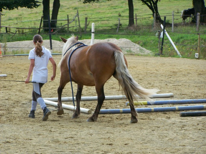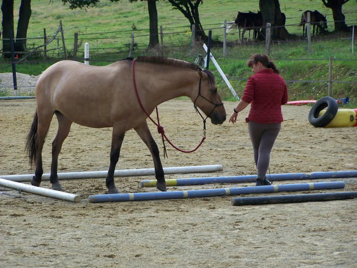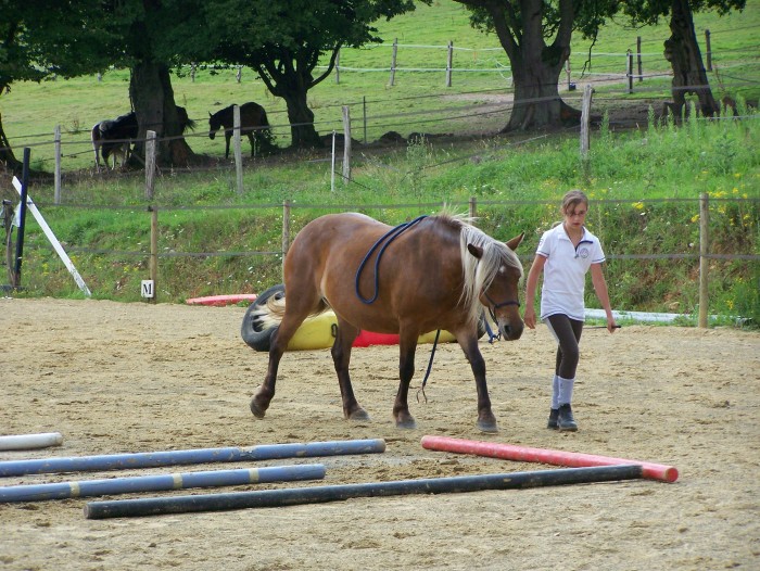 - un slalom dans des barres au pas sans que le cheval ne passe par dessus