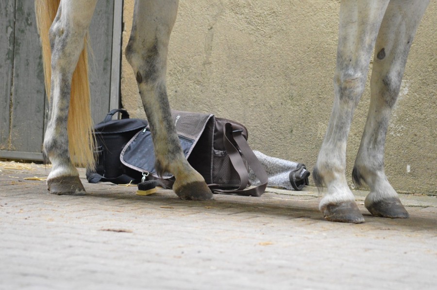 Objectif du jour: aborder quelques bases du travail à pied, d'abord avec Louange qui connaît un tout petit peu (bien moins que les chevaux du club dont elle a l'habitude), mais qui est surtout hyper sensible, fine et réactive, du coup, avec elle, chaque geste compte, elle pardonne les erreurs, mais réagit aussi au moindre mauvais placement ou geste inadapté