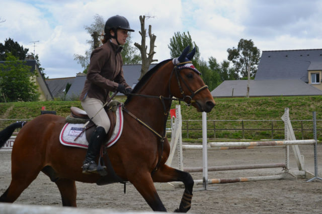 - dressage : détente pas terrible, à chaque allongement le cheval part au galop (legère confusion de sa part puisqu'il partait très bien). Sur le carré il s'est très bien comporté à bien allonge (mème si il peut faire mieux on a quand mème eu un 9), le premier arrèt il bouge, tout le travail au galop est très bien à part les transition trot galop, ducoup il pas trop compris ce que je lui demandais, la première il s'est mis à allonger et comme je continuais à mettre des jambes (ma monitrice m'a dit quil aurait mieux fallu que je reprenne) il m'a fait un petit saut de mouton (ducoup un petit 3 sur la figure), la deuxième transition mieux réussit. Tous mon début de tour j'ai également les rène un poil longue, ducoup on finit 2ème à 0.8 pts du premier grrrr.