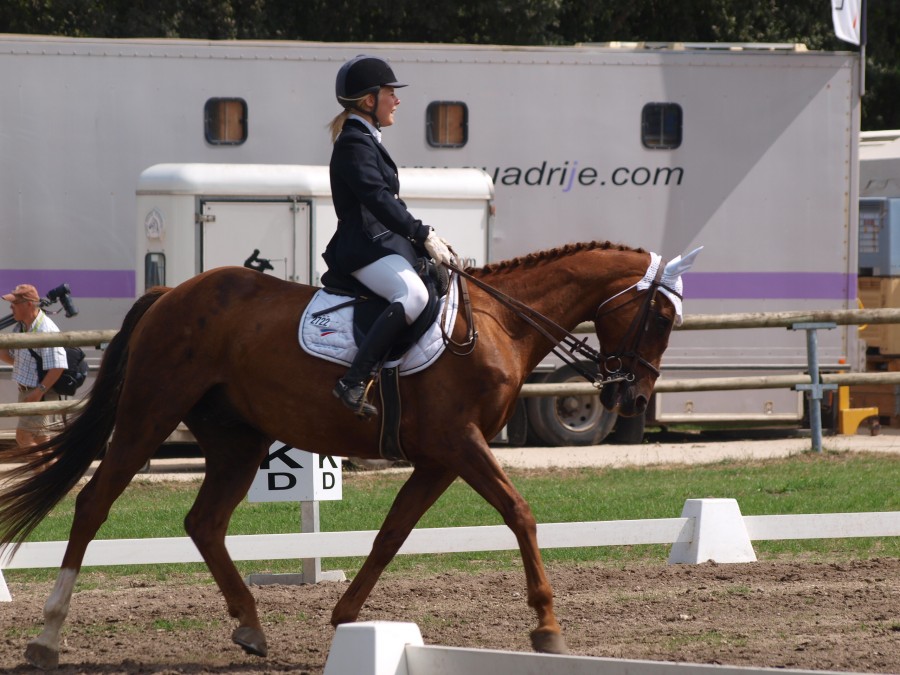 Dressage au top (bon c est parce que je compare à d habitude parce que clairement il y a encore eu des fautes). J ai pu rester à l écart des autres pour m échauffer. Elle est resté verrouillée à gauche et je foire complètement mon recule. Mais on tient bien les contre galops et on sort un trot moyen correct.