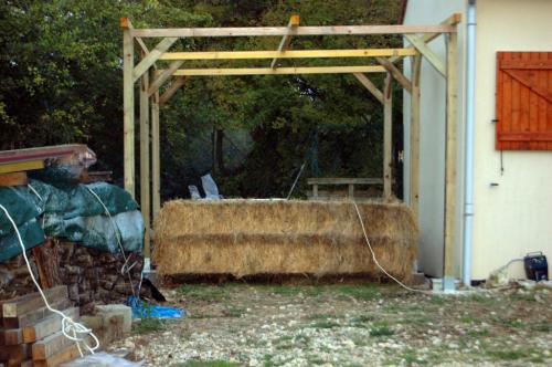 Voici des photos de l'ossature de l'abri pour le foin et la paille :