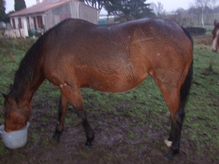 Une petite photo d'elle 2mois avant d'etre saillie, beurkk je la préfere maintenant, on dirai qu'elle est toute fragile, j'aime les chevaux costaud