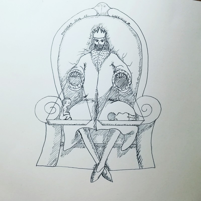 Bon par contre j'ai clairement totalement improvisé donc il n'y a aucun respect de l'époque et de la localisation concernant la tenue du roi parce qu'à l'époque et au lieu où ça se passait, il ne portait probablement pas du tout ce type de fringues.