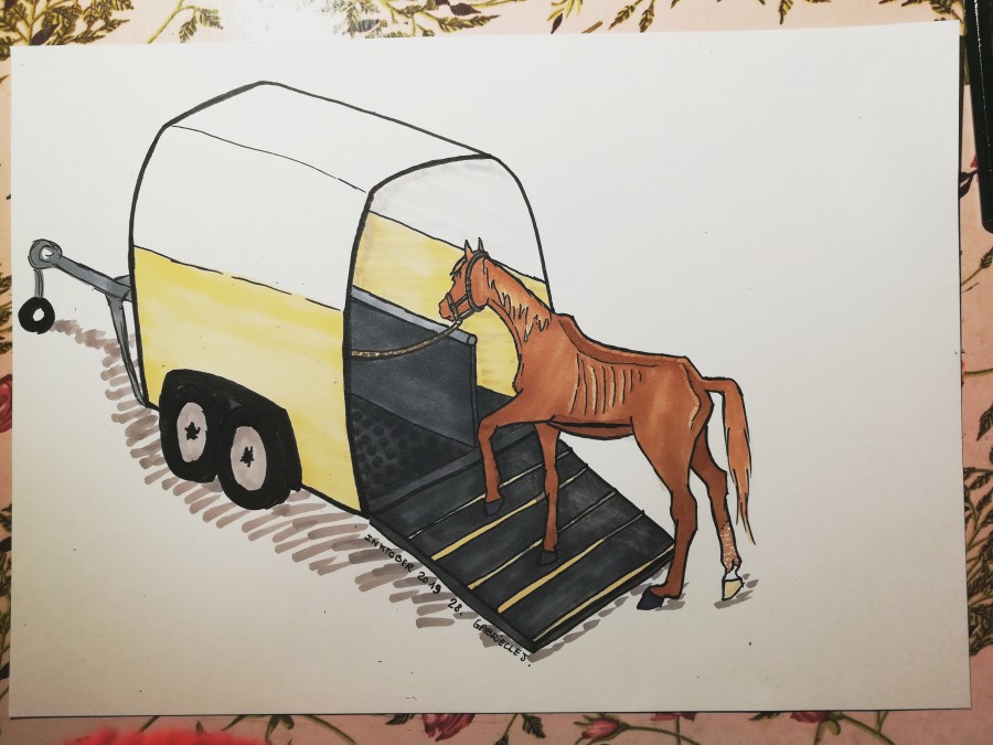 Le dessin est basée sur un cheval en plein saut donc oui l'encolure est allongée et les naseaux assez larges, mais sortir du contexte ça peut faire bizarre
