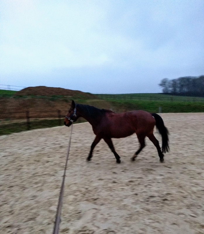pour dryade une longe, ca faisait longtemps. en gros 10 min de detente au trot / n'importe quoi, meuf mega gazée qui pete en l'air des qu'un flocon la touche