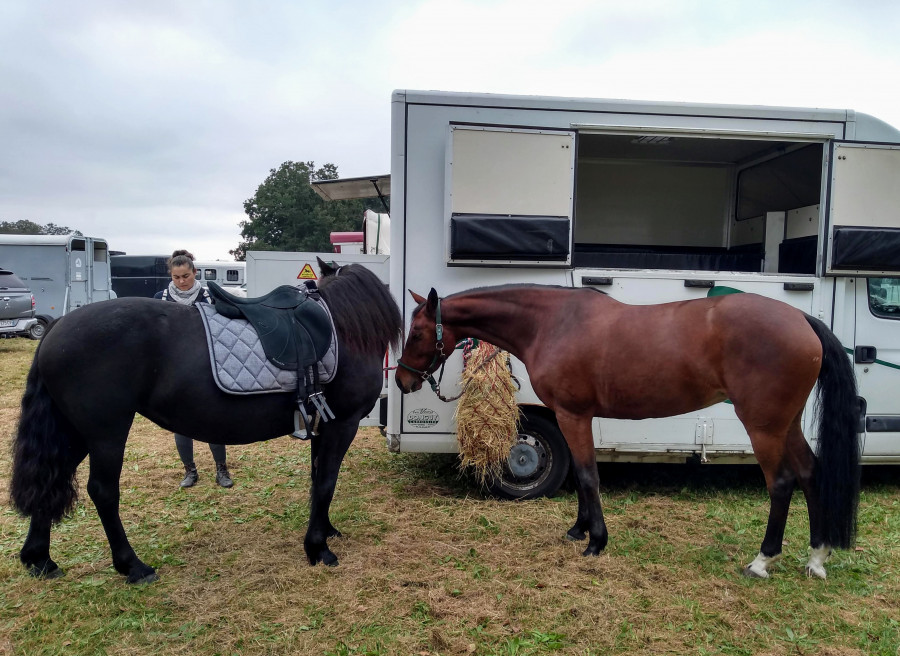 J'ai eu de bonnes choses dans le travail au trot, notamment les transitions pas trot dans l'EED ou elle restait bien stable . Idem les transitions pas galop et trot galop elle restait bien tendue sur ses renes.