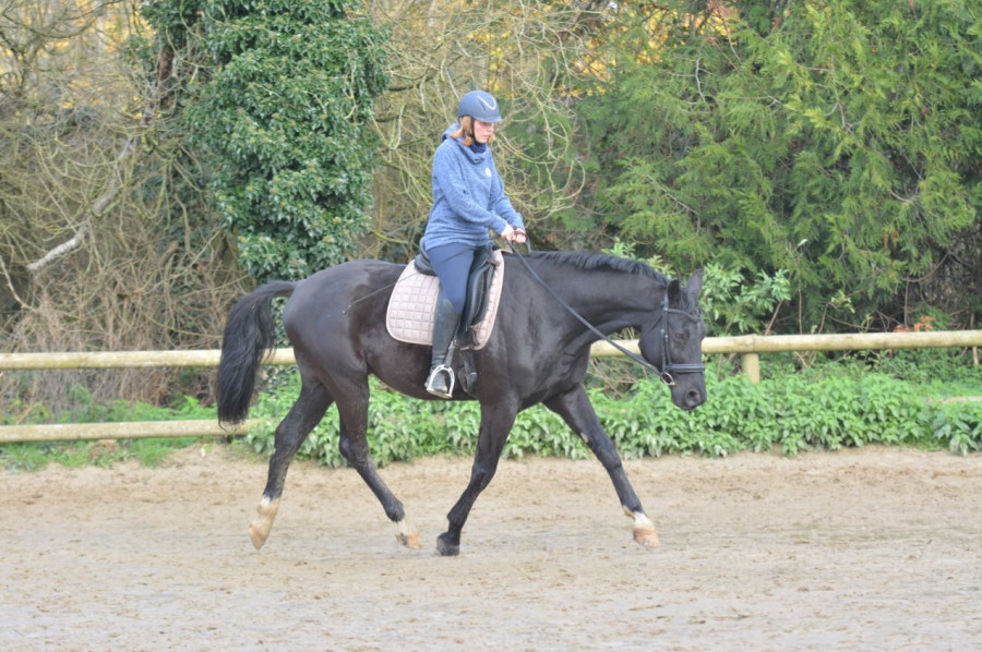 Travail depart du trot, variation de pli sur le grand coté, transition sur le petit, on recommence. Ensuite idem avec depart du pas et galop pas. Puis enchainement de depart pied gauche pied droite avec quelques virages au contre galop. Elle etait electrique mais du coup fait super. Pour finir quelques appuyers au pas en escalier.