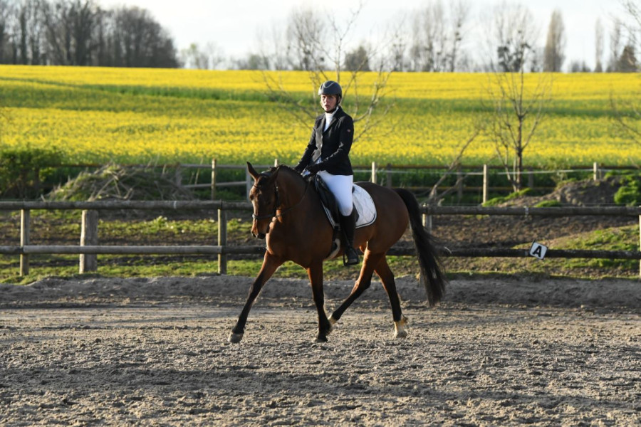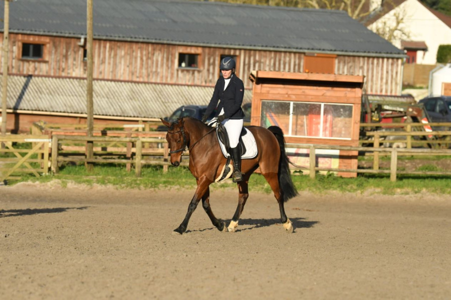 Pour dryade ca a été longe avec des BAS (2 sur un cercle de 15m) , et un cavaletti que j'ai ensuite monté en vertical a 85. Sur les BAS travail de transition , l'obstacle travail des abords au trot.