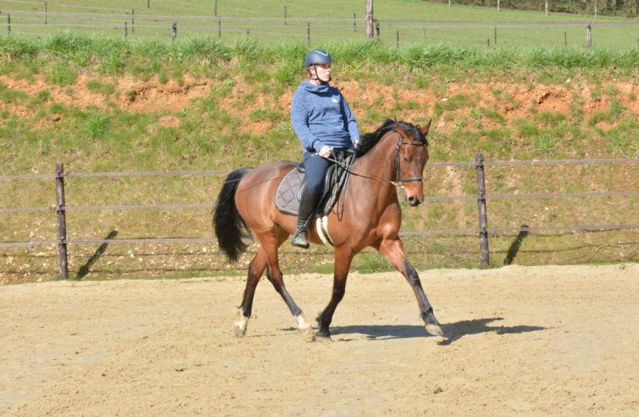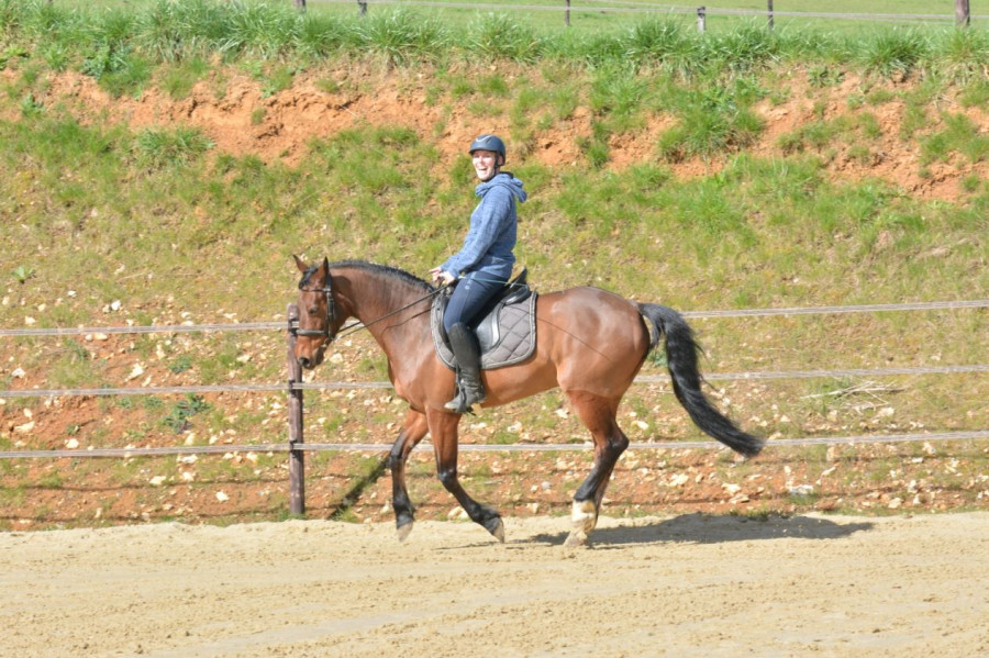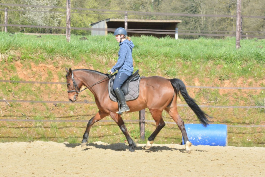 - detente au galop idem, transition trot galop trot sur grand cercle. Puis avancer / revenir .