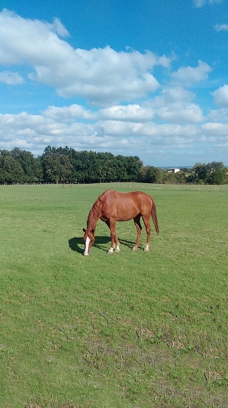 Purriez vous s'il vous plait m'enlever le fil qui passe sur la tête de mon loulou ou la cloture complète ainsi que les petites "tâches" flou blanche et marron que font les chevaux au loin ?