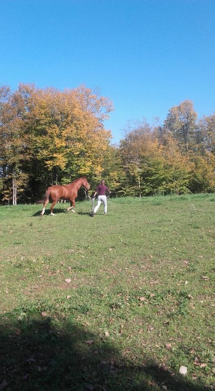 Samedi 30 septembre : La météo est nettement moins jolie mais la pluie annoncée pour la journée n'est pas encore là, on tente donc une sortie le matin. Nous sommes partis 1h10 pour 9 km dans les bois alentours. Bilto n'est absolument pas fatigué de sa sortie de la veille et tente de trottiner dès qu'il peut... en pleine forme mon petit cheval...
