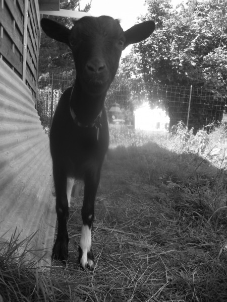 notre petit bouc, le grand copain des chiens (si si) arrivé en mai (il sera castré prochainement).