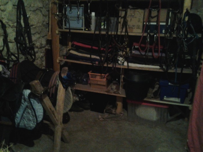 ), mes bottes, mon nécessaire à cuir, un mors qui ne sert plus, mon étrier (oui MON l'autre et sur la selle, bonjour la feignasse