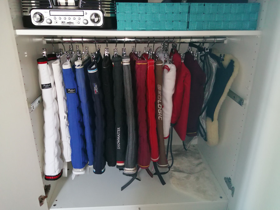 Je pense mettre une armoire identique dans ma sellerie pour tapis, couverture, bande, etc. Tout ce qui est textile quoi.