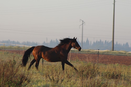 Hier j'étais super contente parce que pour la première fois depuis 1 mois et demi maintenant que j'ai adopté Zigual, il a joué avec moi dans le champs ... vraiment joué je veux dire pas comme parfois quand il a peur et qu'il part au galop toute blinde complètement affolé mais non il a fait des aller retours en faisant des sauts de moutons, il est revenu au galop vers moi puis demi tour et coup d'encolure à quelques mètres ! vraiment un poulain quoi ... tout en me respectant parce que ne rentrant pas dans mon espace vital !!! ça me conforte dans l'idée qu'il va de mieux en mieux, mentalement et physiquement grace aux soins et attentions que je lui porte et que bientot on pourra démarrer une histoire montée ... tout ne sera pas rose c'est sur mais maintenant ce que je vois dans son oeil c'est l'avenir et plus le passé .