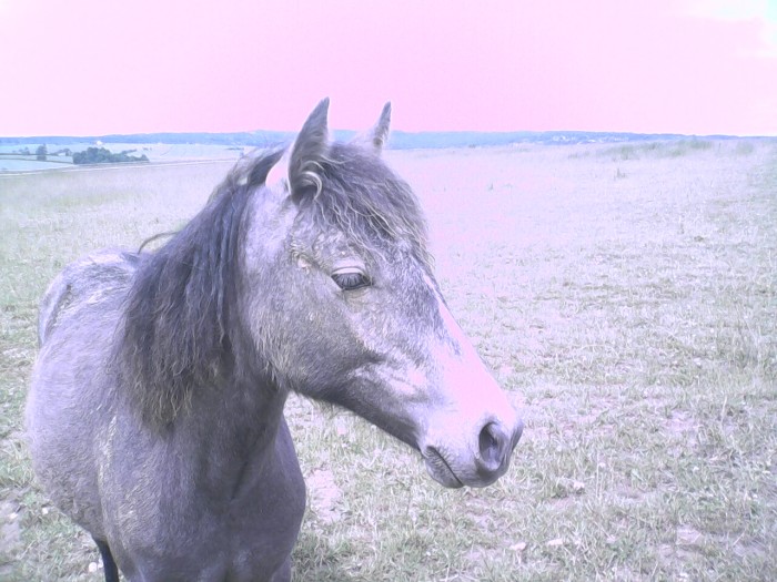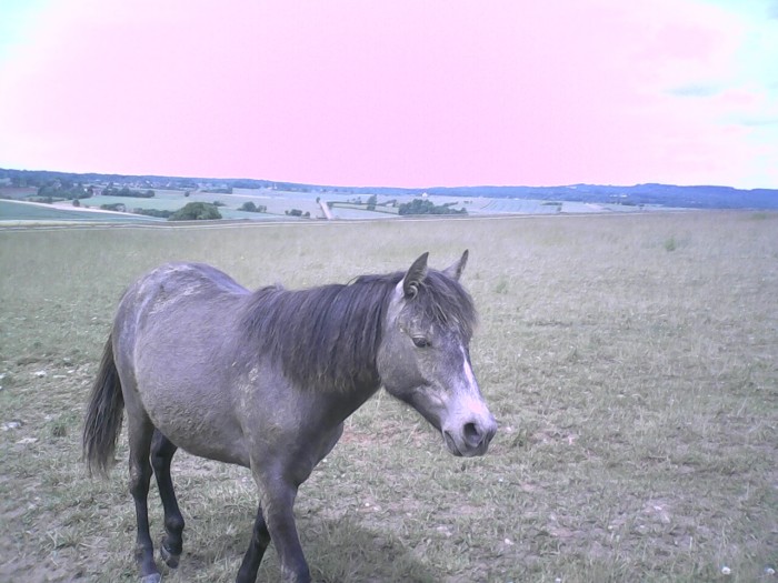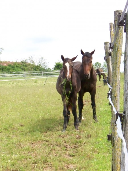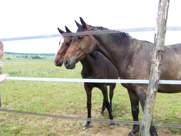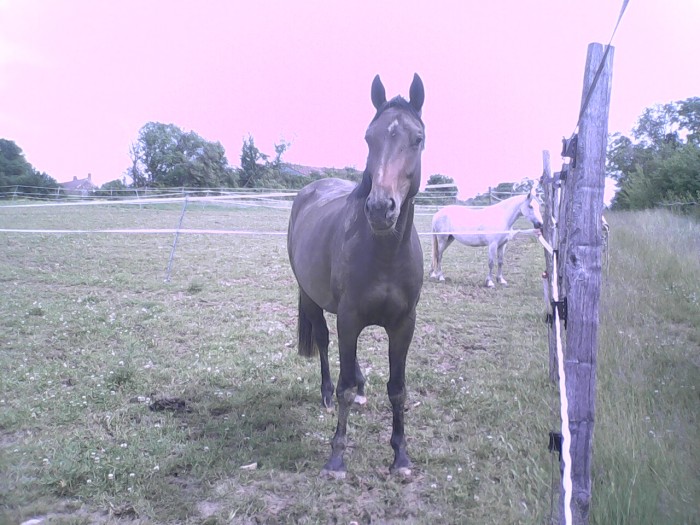 Et cet aprèm après le big orage et la coupure d'électricité de plus d'une heure je suis allée vérifier les clotûres avec ma mère on est allées dans le pré d'Orla elle m'a fait des calins c'était trop chou et après on a fait le tour de son pré et elle me suivait partout