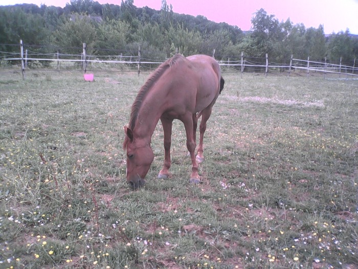 Alors louloute passe ces vacances au pré ,Impec' sauf sa dermite mais sa va sa queue repousse petit a petit et elle commence a ce bouffer les crin mais elle laisse quand même 6-7 cm car elle peut pas allez plus loin ,Hé ouii louloute faut faire des flexion d'encolure Voili voilou des photos bientôt