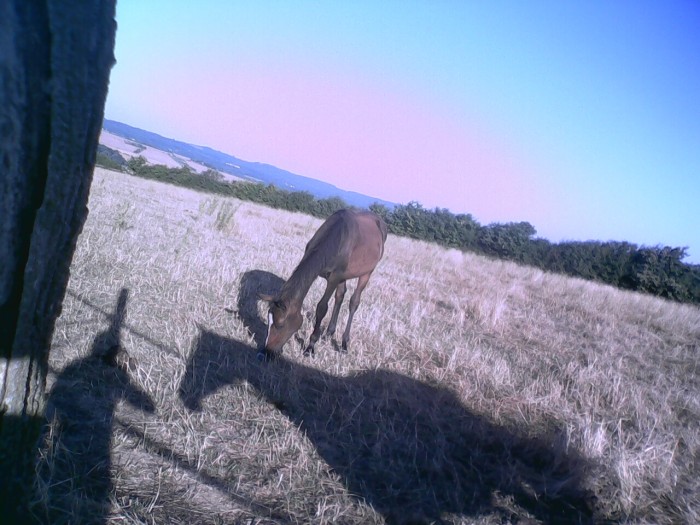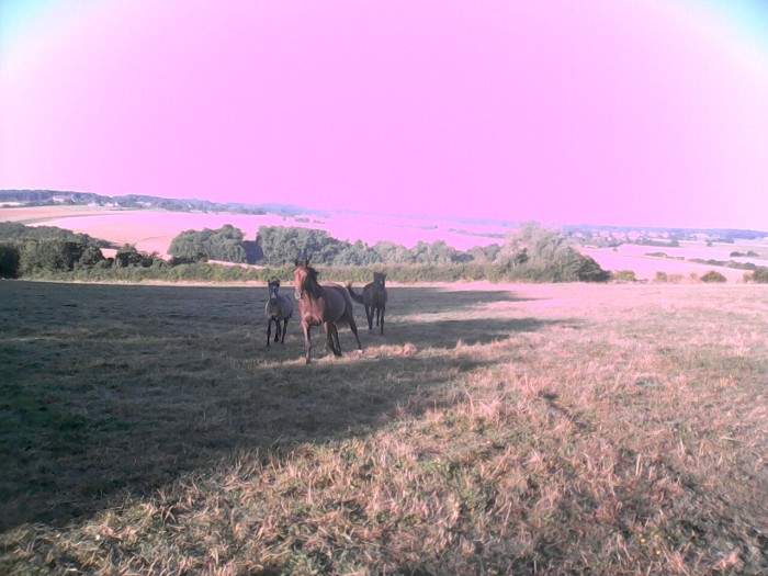 Là c'était moins drôle parce qu'en fait il pile quand il est trop proche d'un autre cheval donc j'ai pu toucher personne sauf son frère et à deux on a réussis à attraper les autres ! A un moment je m'approche de Saturne mais il faisait un oeil super méchant du coup je dis "Oh non pas vers lui il est féroce" tout le monde était mort de rire x)