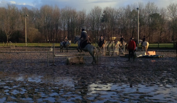 Oui le terrain était inondé du coup le club avait mit les obstacles sur le haut de la carrière, et non ce n'est pas ma sœur mais mes deux amies qui elles sont sœur de mon cours d'équitation