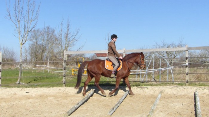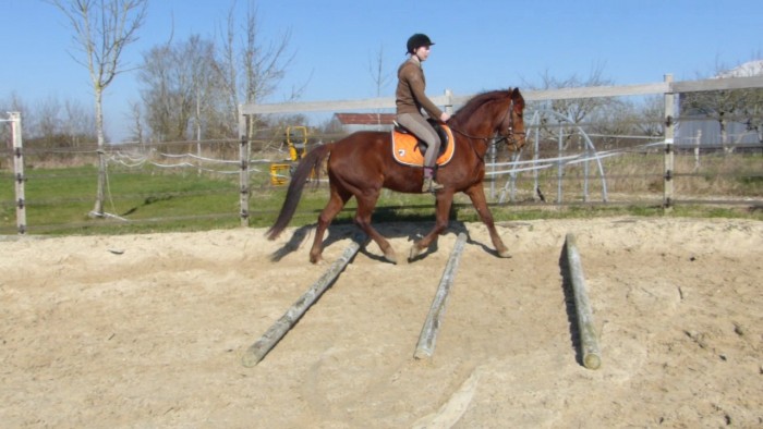Ma mère me met une barre sur la piste, je la passe au pas puis au trot miracle elle passe vraiment la barre au pas et au trot ! Alors que d'habitude elle voit la barre à 7m avant elle est déjà au galop plein cul !