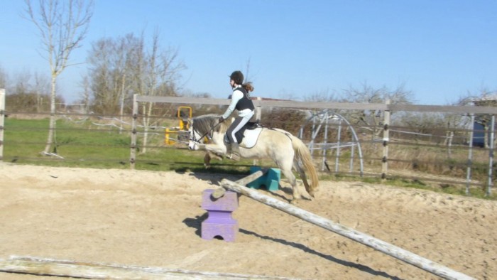 Il saute deux , trois petits obstacles au trot puis au galop , j'augmente et impeccable . Je décide d'aller sur le cross pour lui remontrer les obstacles ... Je crois que je n'aurais pas du . Il était horrible , il avait peur de tout et n'importe quoi ne voulait pas passer les obstacles bref je le reconnaissais pas . Il se foutait de ma tronche à un moment donc j'ai remis les points sur les "i" je ne m'énerve pas souvent avec mais la il m'a vraiment soulé . J'ai pris le temps de lui montrer et enfin il est passé tranquille !